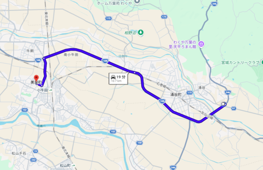 当院は美里町から車で20分。※美里町役場参照